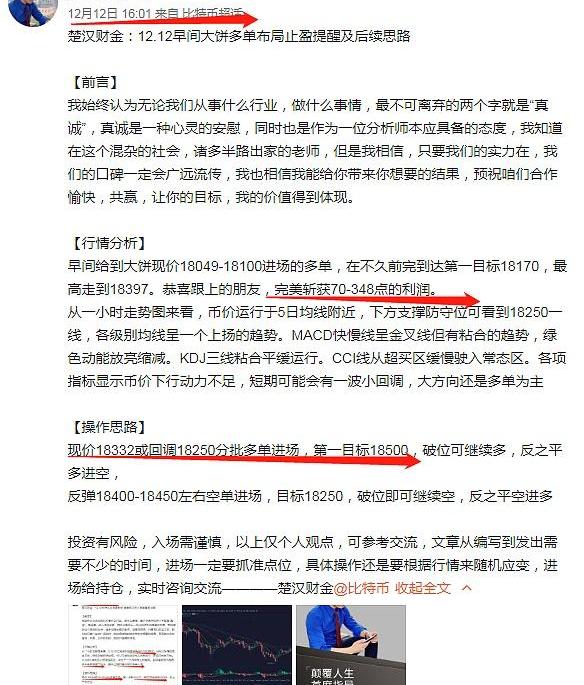 晚间给到大饼现价18332进场的多单,在不久前完到达第一目标18500,最高走到18525。恭喜跟上的朋友,完美止盈168点,日内大饼连续两单共计创造出238-516点的利润空间,再次恭喜抓住的朋友。从一小时走势图来看,币价运行于10日均线18408之下,币价短期如未能突破此点位,可空单入场,下方支撑可看到18250一线,破位可追18175。MACD快慢线呈死叉线并且又继续发散的趋势,红色动能放亮缩减。KDJ三线开口向下发散运行并且快线已突破50轴。CCI线在常态区呈微微下拐的趋势。各项指标显示币价上行动力不足,激进的朋友短期可追一手短空,把握给到的机会。大方向还是多单为主