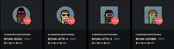 每个 CryptoPunks 都有自己独特的属性。某些稀有的属性和组合方式将决定 CryptoPunks 的价格。因此,NFTX 创建了五个不同的基金,用于满足不同的价格点。