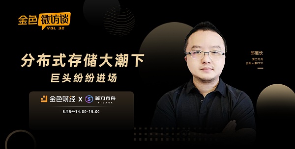 8月5日14:00,算力方舟创始人兼CEO邱道长做客金色微访谈第32期直播间,本次直播由金色财经海带主持,主题为“分布式存储大潮下,巨头纷纷进场”。