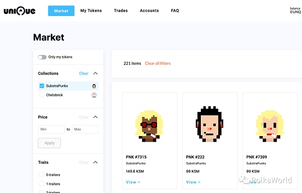 Unique 建立了一个 NFT 交易市场 ,可以在里面浏览、出售、购买 NFT。