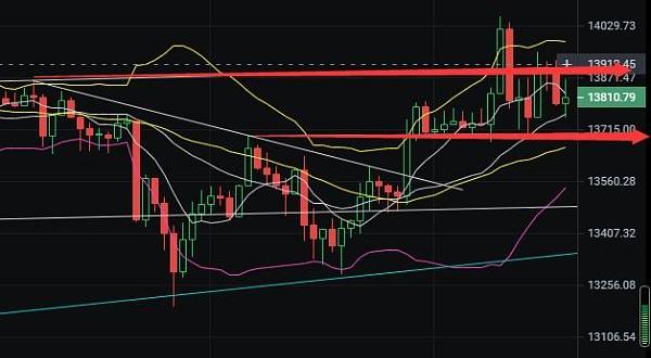 老魏行路比特币现价解析;亚盘行情一直处于区间震荡,百点左右的震荡,老魏早盘在文章中也提到过,今天大选投票。主力资金,包括庄家游资,都不会铤而走险,都在等待结果,结果出来才会下注,四小时小连续多天处于震荡上行通道,今天有走平迹象,小时线目前重点关注上方压力位14000一线,下方重点关注13670一线,目前老魏都是没有操作的空仓。行情波动不大。不能让无限的风险,博取有限的资金。操作建议上还是看一个高抛低吸;