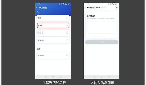 用户可以通过助记词、私钥、keystore任意一种方式进行钱包恢复,推荐使用助记词恢复。