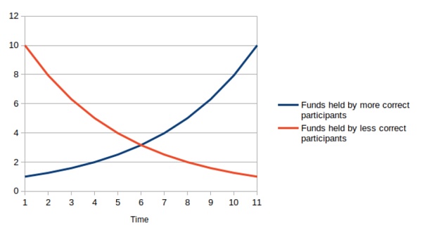 此类问题最流行的解决方案是 futarchy,由 Robin Hanson 在 2000 年代初期推出。投票变成注:投赞成票,您就押注该提案会带来好的结果,而投票反对该提案,您押注该提案会导致糟糕的结果。 Futarchy 引入个人责任的原因很明显:如果你押得好,你会得到更多的代币,如果你押得不好,你就会失去你的代币。