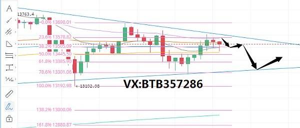 一小时看行情正在走一个三角震荡整理,上方承压EMA55均线且受阻与斐波那契回撤线23.6%一线位置。从小时图形态上来看上个小时价格收了一个锤子线看跌信号目前已经跌破EMA13均线指标,从指标上来看MACD快慢线在零轴下方金叉向上,量能柱逐渐出现实体阴柱子,说明上涨的力度正在减弱,KDJ三线交叉向上发散但是开始有拐头向下的意思,综上所述:晚间建议还是保持高空思路!