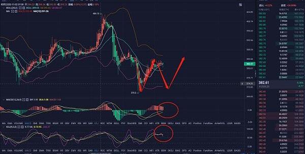 1小时图来看布林带呈现一个走平的形态目前币价在中轨上方附近,均线MA5-MA10均向上拐头趋势,从幅图指标来看快慢线在0轴下方即将形成金叉向上发散迹象,红色动能量不断呈现缩量形态,KDJ三线来看均在50轴上方附近均向下发散形态,操作建议,空单为主,多单为辅。