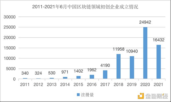 2011-2021年6月中国区块链领域初创企业成立情况 (来源:巴比特)