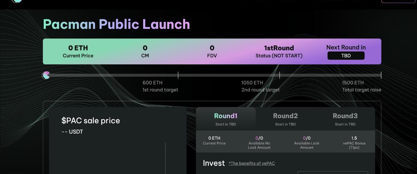 与市面上常见的IDO概念不同,PacmanFinance在基于IDO的基础上,又添加了质押要素。据官方说明:PAC初始发布,将开通PAC-ETH的交易对,定价为0.0000133333ETH,约0.025美元,并通过三轮veDAO发售PAC总量的15%,4,500,000PAC。根据veIDO的规则,PAC的上市价格区间为$0.39~$0.6,FDV区间为19.71M~30M。