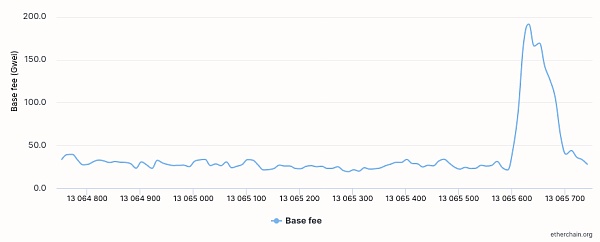 相似的情况再次上演:用户通过发送越来越高的交易费来互相争夺抢先买到的机会,把 gas 费推到天价。又是换了一个名称的竞拍,在 15 分钟内以高价挤掉链上其他所有应用,与以往一样。