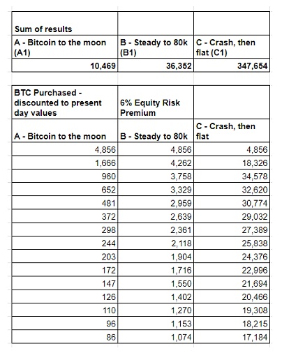 仅使用股权风险溢价贴现以获得未来比特币购买的现值(见下图);