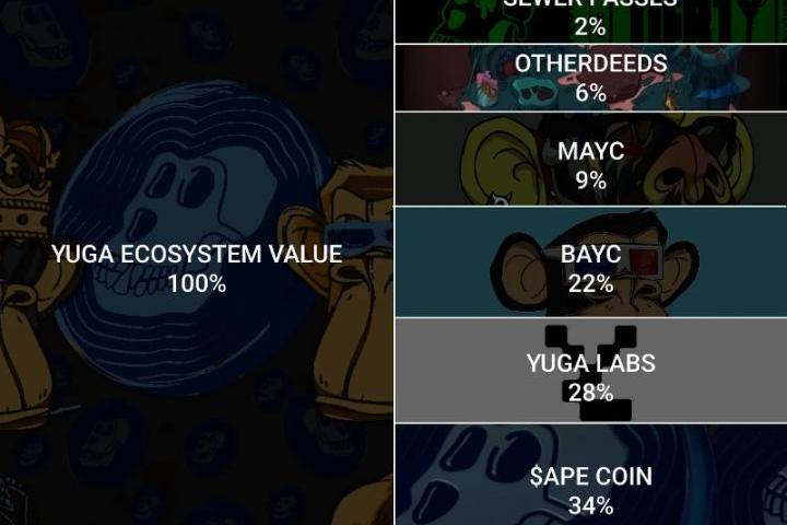 运用同样的逻辑,Yuga生态系统的价值等于整个Yuga世界的价值。它是YugaLabs股权实体所有的资金和所有现有NFT收藏品和代币价值的总和。