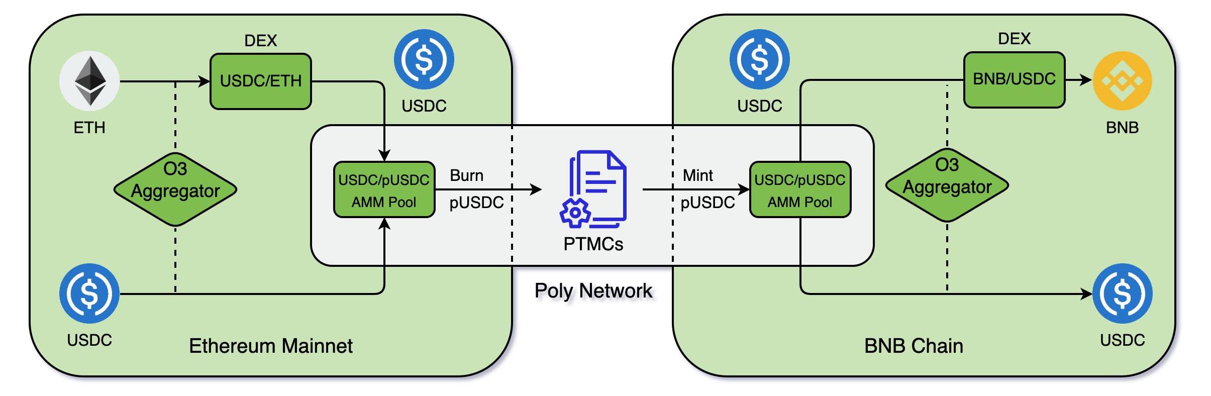 O3Swap是一个跨链聚合协议,其v2版本支持在源链上和目标链上聚合DEX,提供的服务除了在不同的链上桥接相同的代币之外,还可以Swap不同的数字资产。