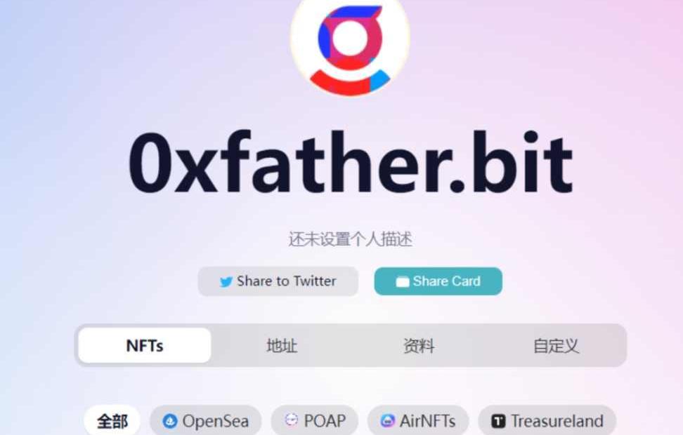 .bit不仅是一个DID账户,同时也可以作为一个跨链资产聚合器,拥有.bit账户的同时,也自动拥有.bit.host和.bit.cc,如您拥有了0xfather.bit,您同时也拥有0xfather.bit.host和0xfather.bit.cc这两个域名地址,您将可以通过他们来查看您的公链资产。另外.bit已实现NFT、POAP、.bit账号、公链地址等内容的集成,拥有一个.bit账号,您就相当于拥有了一个跨链跨资源的专属身份名片.