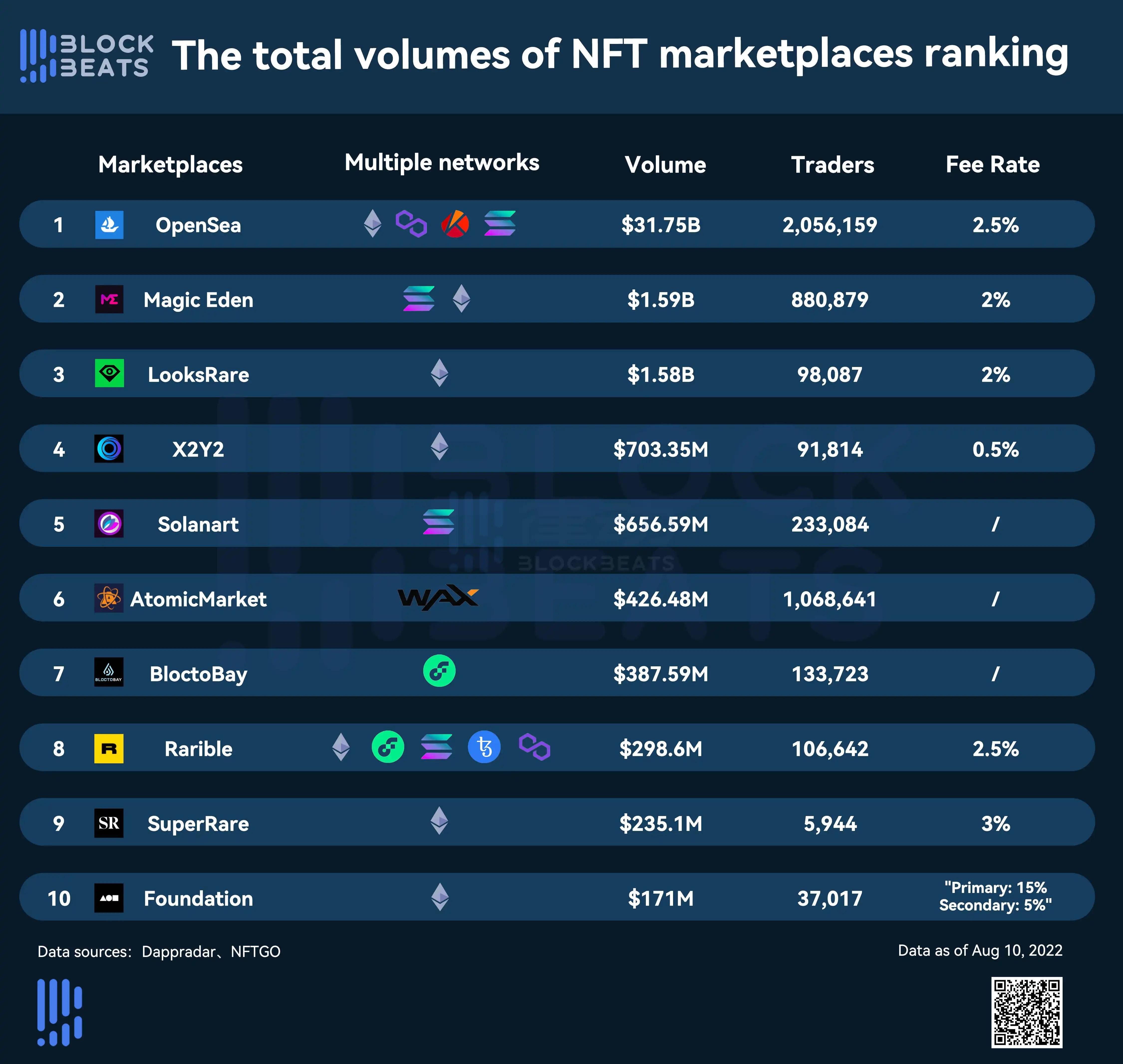 因此,MagicEden只用了九个月的时间,便快速成长为了一个加密独角兽,但却没太受到加密市场熊市的到来及NFT交易低迷的影响。而走到这一步,它的竞争对手、目前NFT交易市场领域的霸主OpenSea则花了三年的时间。