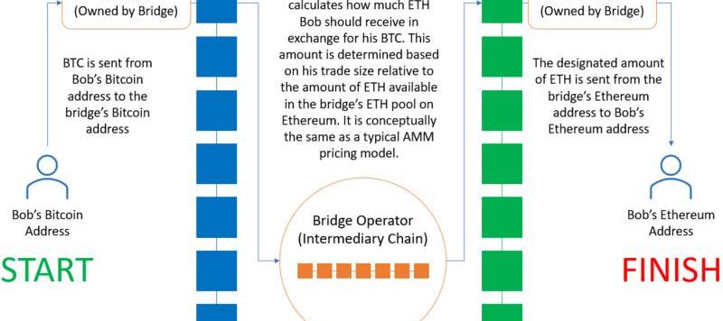 在过去一年左右的时间里,该类型的跨链桥越来越受欢迎,THOR?链的壮大是其中一个促进因素。原生跨链交换桥允许用户将源链上的原生代币交换为目标链上的不同原生代币。例如,用户可以在无需封装资产的前提下,在各自的链上将原生?BTC?换成原生?ETH。这是通过利用跨链自动化做市商?(AMM)?和中间链来实现的,该中间链用来监控和记录源链和目标链的状态。尽管跨链交换不同原生资产的功能非常有用,但该类型的跨链桥使用了堪称最复杂的传输机制。