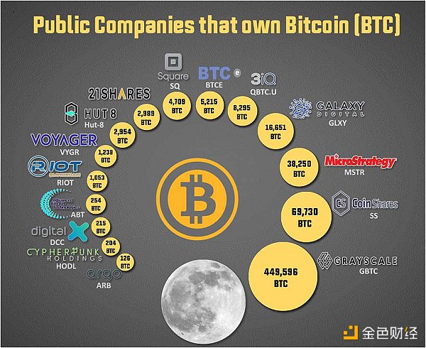 Buy Bitcoin Worldwide网站上还显示,在 34 家上市公司的资产负债表上也持有比特币。总体来说,这些公司所持有的比特币占到比特币总供应量的 1%,其中最知名的就是纳斯达克上市公司 MicroStrategy,当然还有其他上市公司也启动了对比特币的购买。