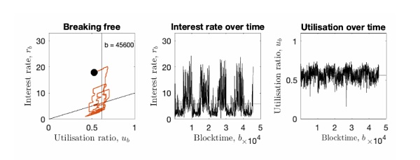 Euler协议中对于资金利用率和借贷利率相互之间影响的模拟,来源:euler blog