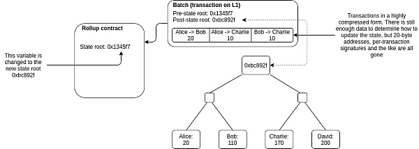 任何人都能够以高度压缩的形式发布批处理,交易集合以及先前的状态根和新的状态根(处理交易后的Merkle根)。