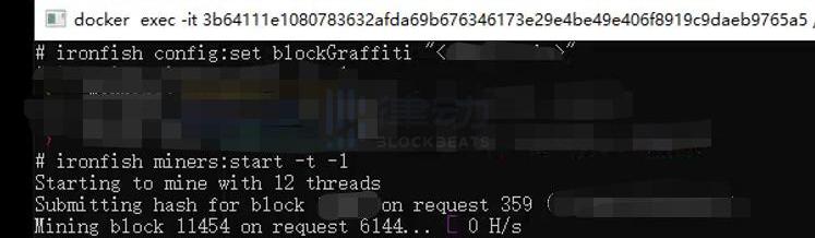 修改完graffiti后,并且节点同步完成之后,可以开始进行挖矿。如果你想在挖矿的同时进行一些其他工作,可以输入:
