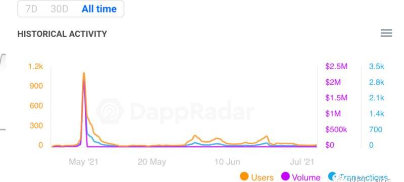 根据Opensea上7月份的数据,BAYC在二级市场价格正在上涨,目前BAYC的底价为2.52个ETH,Meebits的底价为1.05ETH。在6月1日,一只BAYC以49.99个ETH的价格售出,收益率高达62500%。虽然这个价格仍然低于Meebits支付的最高价格303个ETH。