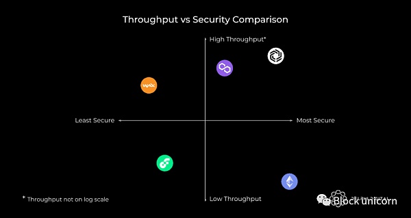 EOS 是构建 WAX 的第 1 层,达到了约 4,000 TPS 的历史最高水平,使其在吞吐量方面排名第三。然而,在这里,可扩展性权衡更加明显,网络只有 21 个出块验证器的事实证明了这一点。我们团队和其他人的意见是 EOS 容易串通,这解释了为什么我们在安全性方面将其排在最后。最后,Flow 以~100 TPS 计时。该吞吐量水平可能低于主流采用所需的水平,但如果由真正去中心化的网络实现,这将是一个可观的数字。但奇怪的是,事实并非如此。虽然 Flow 有 140 个共识验证器,但绝大多数由 Flow 团队自己直接运行。此外,您首先需要运行节点的权限。因此,Flow 以目前的形式高度集中。考虑到这一点,您可能想知道为什么我们在安全性方面将其排名略高于 WAX。我们相信,在未来,它将能够比 EOS 更容易去中心化,在我们看来,Dapper Labs(Flow 背后的公司)比 EOS 卡特尔更不可能其用户。