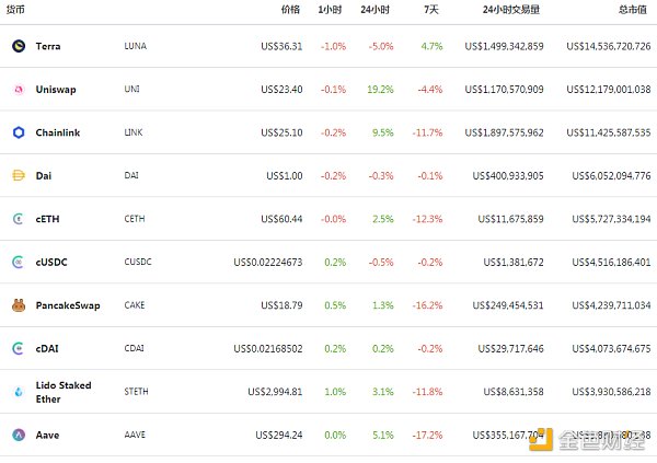DeFi项目锁定资产前十排名及锁仓量,数据来源:Debank