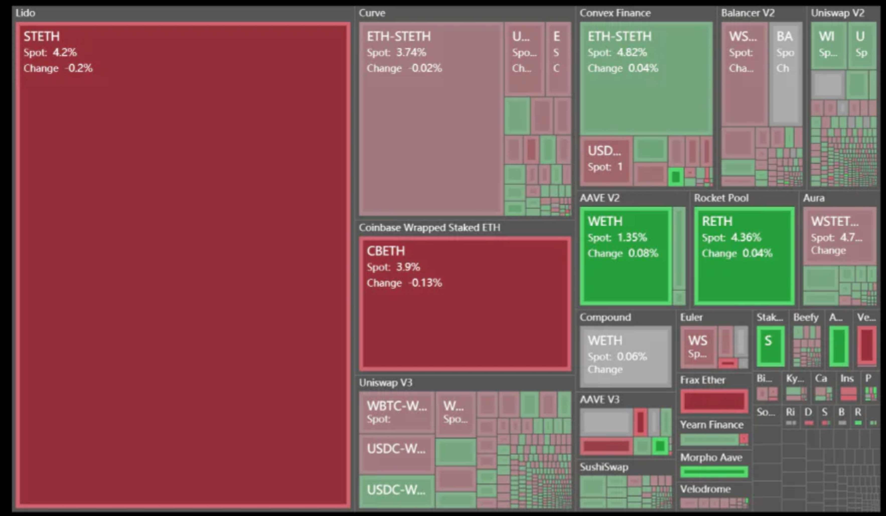 -查看各条链上的各个协议的清算总额-下跌20%的清算总额情况-查看100个最大头寸的清算情况TOP10的最高清算价格是$1,088.017,TOP12&TOP15分别是$1290左右,比较特殊的TOP18是$1547.
