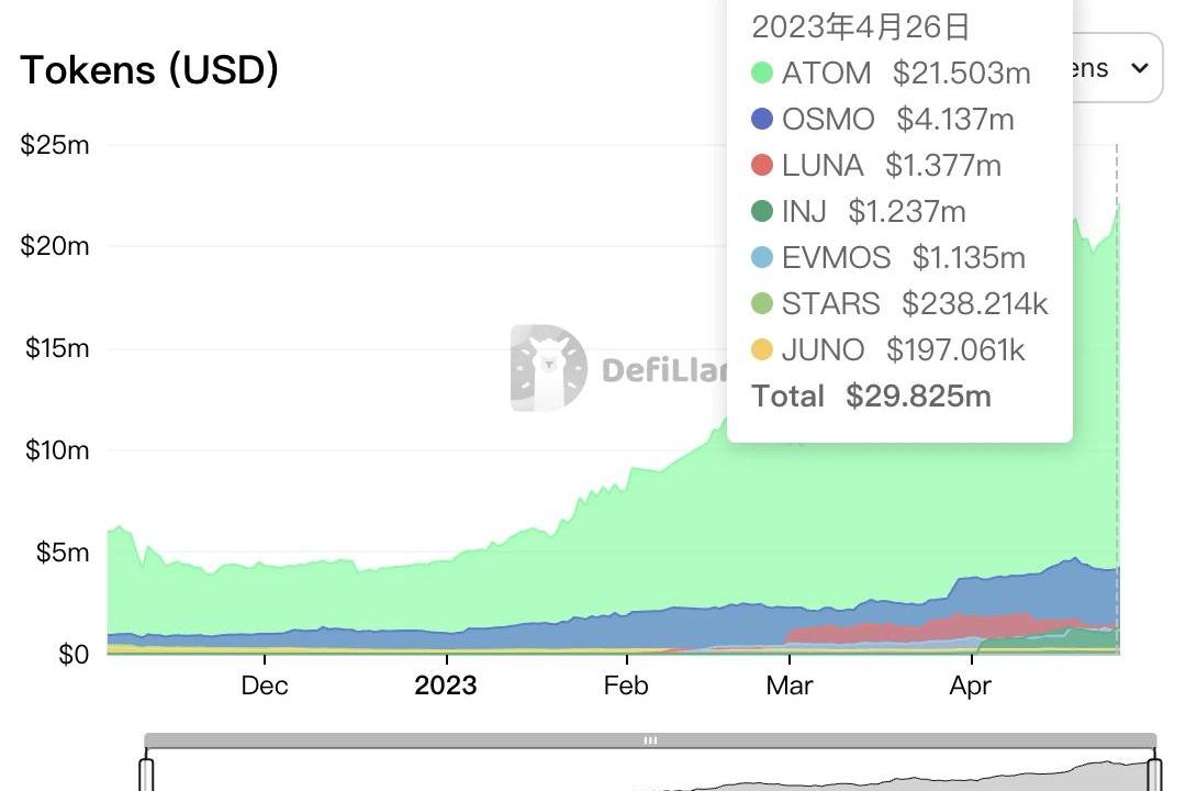 ATOM高达21.92%的质押收益率在主要的公链原生代币中几乎是最高的,但是根据通胀调整后的收益率只有3.58%,也就意味着ATOM的通胀非常高。在这种情况下,如果不进行质押,那么代币持有人的权益将随着时间的推移被大量稀释。根据Cosmos的规则,ATOM的质押收益主要来自于以下两个方面。1、区块奖励。这一部分由Cosmos的链上参数决定,包括预期每年铸造的代币数量和预期的区块时间,决定了每个区块铸造多少代币作为奖励。根据Cosmos的规则,ATOM每年的通胀率在7%~20%之间,旨在将质押率维持在67%。如果质押的ATOM占总量不足67%,通胀率将以每年13%的速度增长,直至20%。如果质押的ATOM占总量超过67%,通胀率将以每年13%的速度降低,直至7%。截至4月26日,ATOM的质押比例为69.75%,那么ATOM的通胀率应该在下降过程中。需要注意,虽然链上参数会指导平均出块时间,但实际运行中出块时间有所差异,这也将使实际的区块奖励和预期可能不完全相等。2、交易费用。这部分是指包括CosmosHub中的交易费用,交易费用带来的质押APR将随着网络的使用情况变化。如果验证器产生的是高手续费区块,那么奖励也会高于低手续费区块。ATOM的高通胀对仅持有代币而不进行质押的用户非常不利。2022年9月,Cosmos开发商Tendermint在Cosmoverse大会上发布ATOM2.0版本的白皮书,但随后Cosmos论坛ATOM2.0:CosmosHub新愿景的提案被拒绝。在代币经济学方面,该提案希望在36个月的时间里逐步减少ATOM的发行量,并铸造代币补贴CosmosHubTreasury。说明团队有意减少ATOM的通胀,但尚未有能够落实的方案。4种流动性质押方案介绍