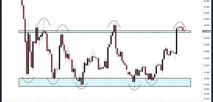 上周,比特币突破31000美元,以太坊突破2100美元,纷纷创下过去10个月以来的新高,极大刺激了市场的交易情绪,「牛回」等各种口号响彻各大加密社区。虽然过去两天,比特币、ETH纷纷回调了10%,但市场看涨情绪依然浓厚。而对于满仓各种跟跌不跟涨的山寨币的朋友来说,只能怀揣着对「山寨季」来临的期盼默默注视着那一份不属于自己的喧嚣。问题来了,随着BTC、ETH双双突破,山寨季真的要降临了吗?山寨季,即山寨币价格大幅上涨并跑赢跑赢比特币的时期。广义的山寨币,是指除比特币之外的其他加密货币,包括ETH、BNB等在内;狭义的山寨币,是指不包含BTC、ETH在内的其他加密货币。衡量山寨币市场的一个重要指标,便是比特币主导地位,即市值占比。在加密市场早期,比特币的主导地位接近100%;但随着山寨币市场壮大,这种主导地位已经下降。因此,如果BTC市值占比下降,则意味着山寨季节可能开始。根据Tradingview数据,今年以来,BTC市值占比从41%一度上涨至49%,此后随着以太坊上海升级完成,ETH市值占比上升,BTC市值占比略微下降至目前的47.4%的水平。