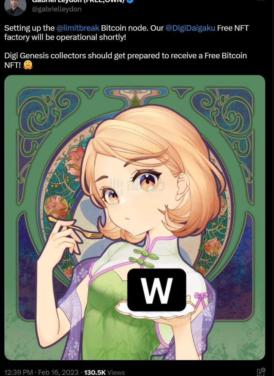 DigiDaigakuCEOGabrielLeydon宣布,DigiDaigakuGenesis系列持有者将得到免费的比特币NFT