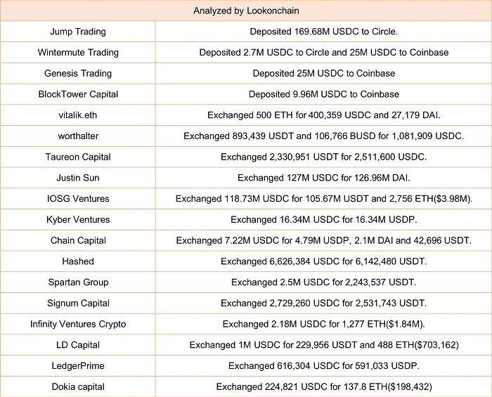 Lookonchain统计的机构操作抄底:USDC损失有限且大概率会回到1美元附近