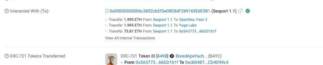 图片来源:Etherscan从上面的费用明细可以看出,OpenSea赚了大约2个ETH,而YugaLabs通过以近80个ETH的价格出售BoredApeNFT赚了差不多的钱。在我看来,任何人应该都不会小瞧这笔经常性收入。愿意花14万美元购买猿猴图片的买家也许并不仅仅为了其艺术价值而购买;相反,他们更可能是为了获利,或者想投机于其潜在价值。他们想用今天的消费来获得未来更高的收益,从而实现各方的共赢。然而,如果市场发生变化,这种情况可能会改变。OpenSea引入了这样一个概念:NFT可以执行版税并为创作者赋权,这对每个人来说都有很大的吸引力,而且我们没有任何理由反对这种做法。然而,问题是,NFT不能自行将版税转让给终端用户。通常情况下,版税是通过OpenSea等市场平台创建的智能合约传递的。这样做的原因在于,我们很难从交易中辨别出简单的转让。如果用户在每次转让时被收取5%的费用,他们就不会再愿意将其珍贵的NFT转移到冰冷的钱包当中了。因此,版税一般由促成交易的市场平台收取。然而,如果市场平台不希望执行版税以降低用户的交易成本,我们可以做些什么?这是目前困扰NFT世界的核心问题。市场新星