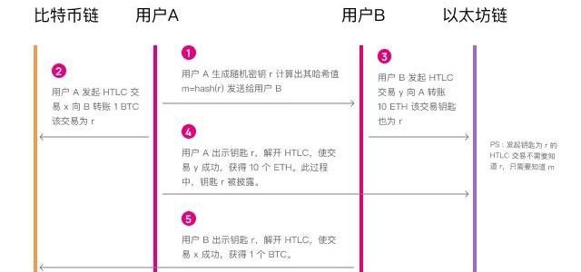 哈希时间锁是一套密码学方法,该方法可以实现去信任的跨链资产交易。比如我用的1个BTC和你的10个ETH交易,就可以通过哈希锁来实现交易的原子性。其原理大致如下:用户A生成随机密码r,并计算出r的哈希值m=hash(r),将m值发给用户B;与此同时,用户A发起一笔交易,向用户B转1BTC,该交易的成功是有条件的,须用户B出示密码r才能成功,否则超过预设的时间,交易将自动失败;用户B看到A发起的交易之后,也发起一笔交易,向用户A转移10个ETH,该交易的成功也是有条件的,需要用户A出示r才能成功,超过预设时间,交易也将自动失败。这里的关键是,用户B创建这样一个以出示r值为成功条件的交易,并不需要拿到密码r的值,只需要知道m值即可创建,而我们知道,哈希运算是不可逆的,知道m无法推算出r;用户A看到B发起的交易之后,出示r值,使得B发起的交易成功,获得B转账的10个ETH,r值被披露;用户B在上个步骤中也拿到了A出示的r值,使得A发起的交易成功,获得A转账的1个BTC。通过以上机制,在两条不同链上的交易,被耦合为一个事件,只能整体成功,或者整体失败,不会出现A给B的转账成功,而B给A的转账失败的情况,反之亦然。