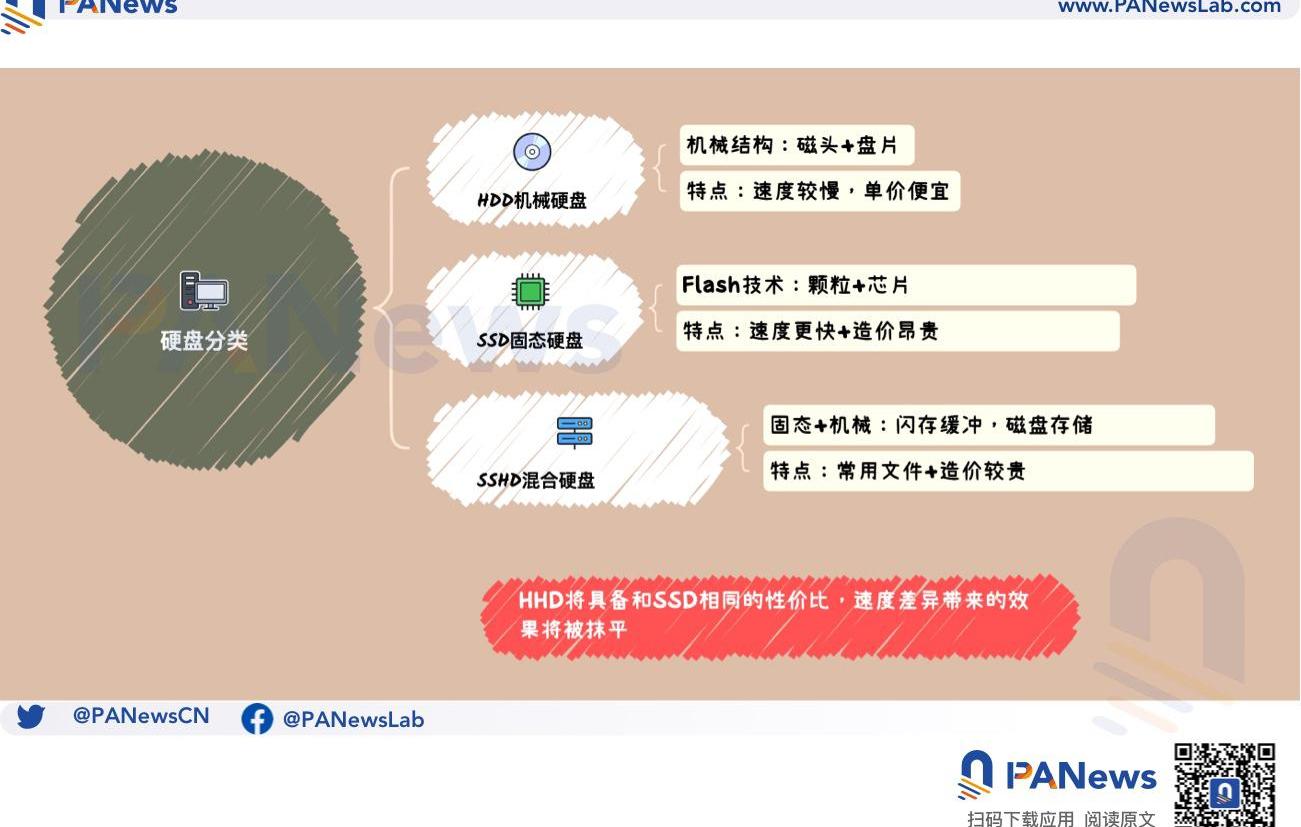 Arweave2.6意在改变单纯的矿工提交速度,这是出于存储和公链不同的特性而采取的优化措施,比特币等公链竞争的是提交速度,以维护网络的正常结算能力和保证主网确认结果的唯一性,但是存储在考虑确认速度的同时,还需要考虑数据的完整性,以防止单一节点作弊导致数据丢失。为此,Arweave2.6会改变自己的数据组织方式,具体而言,会添加一个新的数据分区,以适应新的挖矿机制。Arweave中Weave为最小单一单位,均匀地分布在Arweave网络之上,负责标识存储数据的位置,可以类比为“砖头”;而紧随其后的是chunk,通常是连续的块数据,长度为固定的256KB,矿工所竞争的就是针对组块的SPoRA提交证明,可以理解为一面墙。而本次Arweave2.6更新后会新加Partitions,会以3.6TB的方式组织一个分区的规模,可以理解为一个房间的雏形,以提高数据利用的规模效应。在更改后的挖矿竞争模型中,为了避免矿工通过存储部分数据集的多个副本来占据空间,每个数据的副本对于每个矿工而言都是唯一的地址,以更好辨识副本位置,并且减少无关数据的存储,从而将空间分配给真正需要的数据。对于矿工而言,存储完整数据集的多个副本更容易得到主网承认,从而减少存储部分数据的多份副本对主网容量的消耗。固态VS机械:抹除硬盘速度优越性