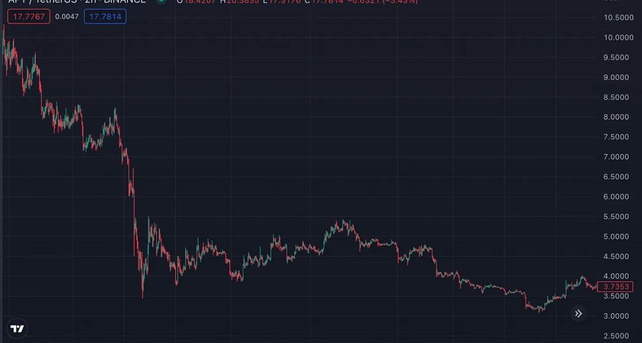 APT/USDT2022年10月-2023年1月-来源:TradingView在FTX崩盘后市场暴跌,但APT和其他「Sam币」受到更严重的打击,在11月7日至12月29日期间下跌了55.9%。其12月的3.08美元低点对该网络的FDV估值约为31亿美元,低于其最近一次融资时的估值。整个市场的情绪一片低迷,而鉴于Aptos的使用量有限,以及来自其最大投资者破产的长期抛售压力的威胁,APT的辐射性尤其强烈。所有卖空挤压之母