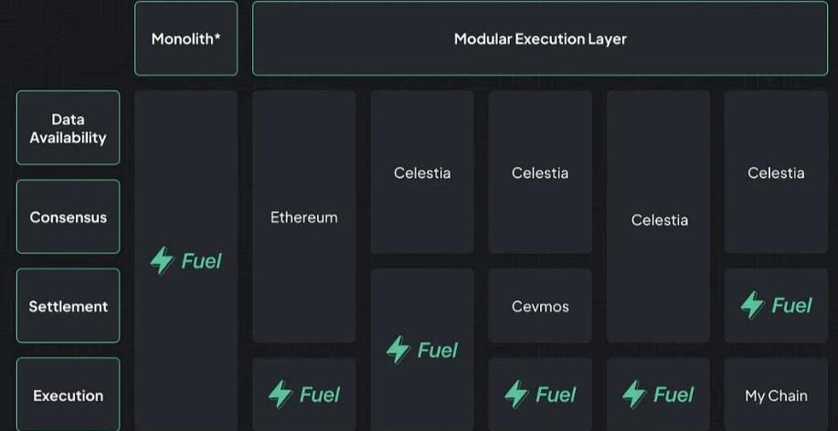 随着Celestia、Fuel和Ethereum上特定应用的推出,模块化区块链的叙述将变得具体化。一刀切的区块链时代已经过去了。每一个以太坊的需求高峰和他们的瓶颈都表明,在通用区块链上共享带宽的应用程序是无法扩展的。模块化基础设施背离了以前的设计,将区块链的不同功能分割开来:数据可用性、共识、结算和执行。这使得每一层都能独立运作,并具有专业性。它还创造了一个市场,在这个市场上,各团队为每一层的最高性能技术而竞争。