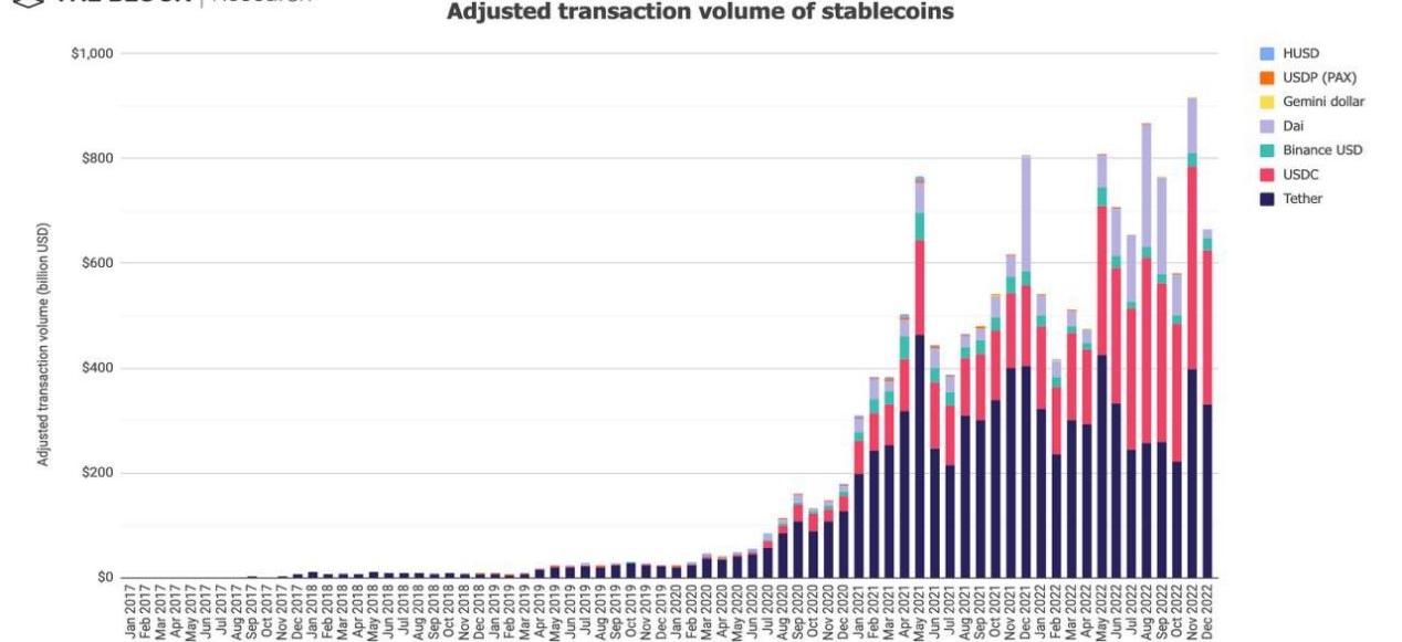 在刚刚过去的2022年最后一个月,加密市场依然没有摆脱FTX和AlamedaResearch破产带来的影响,在这一趋势推动下,加密市场发生了哪些变化呢?让我们用12张图来进行深入解读。1、调整后链上总交易额下降了44%,跌至1440亿美元,其中比特币链上交易额下降了41.1%,以太坊下降了49.6%。