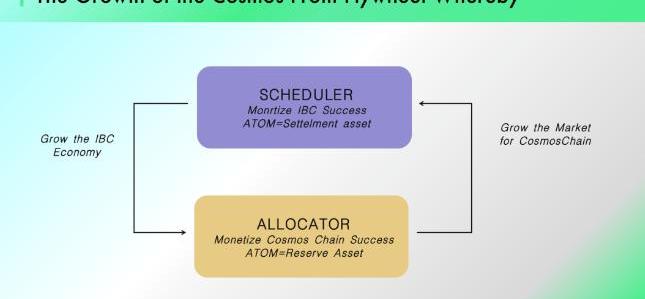 2022年9月,Cosmos团队在Cosmosverse大会上发布了白皮书2.0版本,希望改变Hub网络弱势与ATOM使用率不足的问题,新的网络模型主要意图在于实现如下三个目标。确认Hub作为Chain的中心地位Cosmos2.0通过InterchainScheduler和InterchainAllocator创造准飞轮机制,希望巩固Hub在CosmosNetwork中的核心位置。InterchainScheduler捕获Interchain的MEV价值:创建链间交互的MEV市场,验证节点对跨链TX的验证进行集合竞价,InterchainScheduler并收取匹配费用,从链间经济活动中捕获价值。InterchainAllocator赋能Hub:累积到Hub的MEV收入将用于Cosmos生态建设,这部分价值将通过InterchainAllocator将有前途的新项目添加到CosmosHub的资产中。反过来,这些项目扩大了调度程序的潜在市场。InterchainScheduler与InterchainAllocator可以随着CosmosNetwork与IBC通讯的发展而得到强化。Cosmos2.0这是通过代币化跨链区块空间市场将资源向Hub倾斜,从而确立其在同构链中的主体地位。