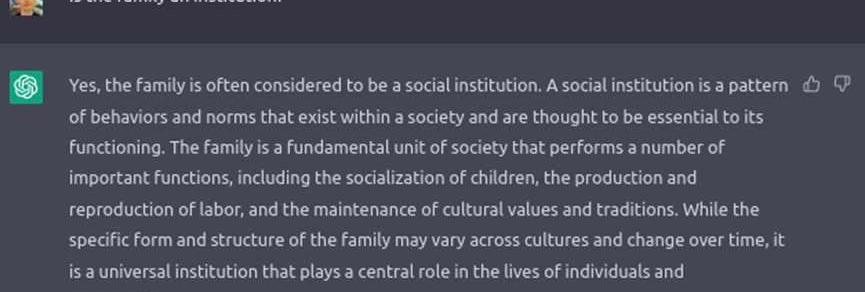 然而,这提出了一个非常重要的问题:到底什么是「制度」?话语中的「institution」一词让人联想到国家政府、纽约时报、大学,也许还有当地的公共图书馆。但这个词也被用来描述其他种类的事物。「theinstitutionofmarriage」一词在英语中很常见,在谷歌上获得了超过两百万的搜索结果。如果你直截了当地问谷歌,「家庭是一种制度」,它的回答是肯定的。