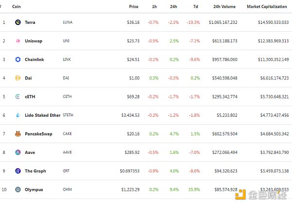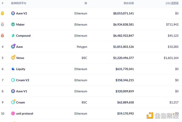 DeFi项目锁定资产前十排名及锁仓量,数据来源:Debank