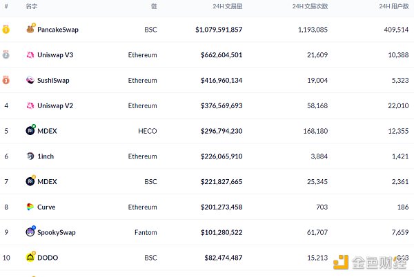 过去24小时去中心化交易所的交易量数据来源:Debank