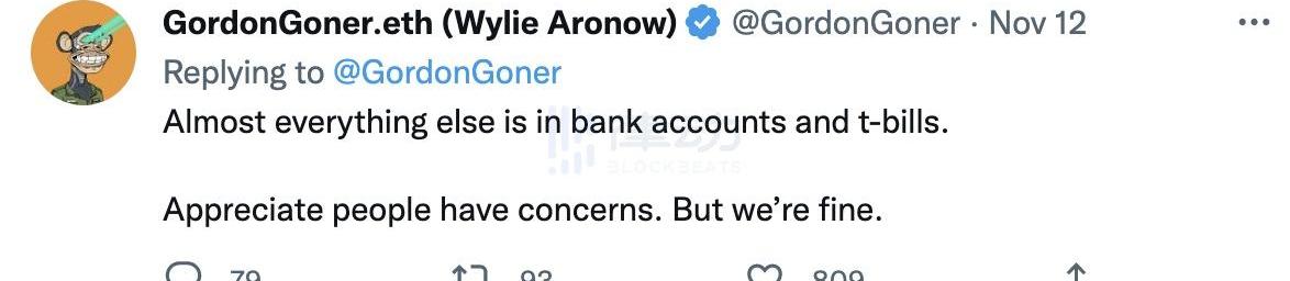 11月12日,YugaLabs另一位联合创始人WylieAronow在个人Twitter再次声明:「FTX的事件没有影响到我们。尽管可能我们的一些合作伙伴使用过,但我们从未使用过。我们在FTX上有一些资金,但我们在本周早些时候已经将其移出。」与此同时,WylieAronow公布了取款链上记录,发现确实在11月9日将19,666枚ETH从FTX.US(在etherscan上显示为blockfolio)转移到了Coinbase。WylieAronow的意思是OpenSea将版税发送到了FTX钱包,而不是YugaLabs官方所为。另外他还似乎嘲讽了那些FUD的人为「精神错乱」和「业余的etherscan侦探」。CT不认账,这才几个钱,大头去哪了?
