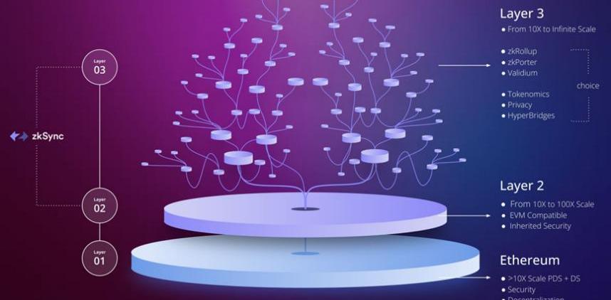 Layer3将实现无限扩展和无限定制,从而产生10倍的空间。并在五个维度实现跨越:安全性:非本地网桥的固有弱点是导致黑客攻击发生的主要原因。而在zkSync的Layer3中,分形超链之间的所有交互都是通过本地桥接发生,从而减少了受黑客攻击的概率,提高了安全性;性能:Layer2的性能预计会提高10-100倍,而Layer3的性能是无限的;成本:鉴于围绕数据可用性解决方案的选择,Layer3的数据成本呈指数级降低;易用性:Layer3对生态系统中每种类型用例的SDK、CLI甚至低代码/无代码解决方案的许多改进,使应用程序的创建变得更为容易;可组合性:使用LLVM编译器,不仅支持Solidity编程语言,而且还支持任何现代语言,这为专注于Rust、C++、Swift等的开发人员创造了10倍的可访问性。zkSync2.0生态