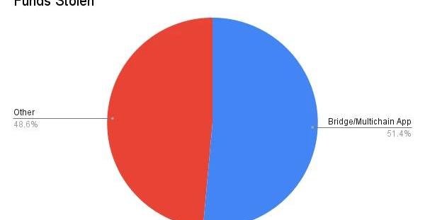 涉及跨链桥或多链应用程序对数据集产生了巨大的影响。尽管这些黑客事件只占总数的10%,但却窃取了25.2亿美元的资金。