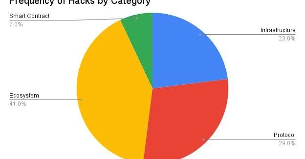 我收集了2020年以来100起规模最大的加密货币黑客攻击的数据集,被盗资金总计50亿美元。生态系统受到的攻击最为频繁。他们占41%。
