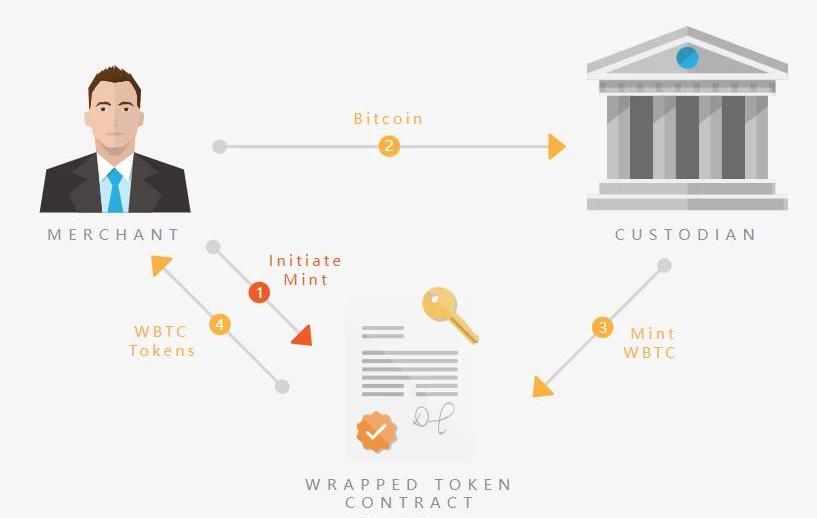 首先需要说明的一点是资产并不能真正实现跨链。就好像实物黄金不能真正钻进你的资产账簿,在账簿中,我们只能用文字格式的黄金余额来代表黄金持仓。类似的,因为区块链之间的记账规则不一样,BTC也不能直接在以太坊网络中使用,我们能做的是把BTC改造成符合以太坊网络记账规则的资产,用这种资产去代替BTC使用。所以当我们说资产跨链的时候,我们其实在说代表资产价值的凭证在另一条链上的铸造和销毁过程,或者原生资产和跨链资产的直接兑换过程。目前跨链桥的技术方案主要可以分成三种:1,锁仓+铸造/销毁类;2,流动性池类;3,原子置换类。锁仓+铸造/销毁类WBTC是典型的锁仓+铸造/销毁类跨链桥。用户要把BTC跨链到以太坊网络,他需要向承兑商请求WBTC。承兑商先对用户进行KYC/AML验证,然后把用户的BTC交给托管机构托管,托管机构和承兑商执行WBTC铸造,承兑商再把WBTC返还给用户。