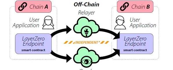 Multichain上的流动性池可以看到,这类跨链桥的安全风险主要由LP承担。池子一旦被黑客攻击,LP提供的资金流动性很可能会被黑客取走。池子失去平衡也会导致跨链资产价值凭空蒸发,从而把危机传导给跨链用户。目前采用流动性池方式的跨链桥主要有ThorSwap、HopExchange、SynapseBridge、BobaGateway等。LayerZero是一个全链互操作性协议,它的跨链方案在流动性池的基础上做了进一步的优化。一方面,它通过“统一流动性池”让各链共享流动性。另一方面,它通过在各个区块链上部署Endpoint,在Oracle和Relayer的帮助下实现对跨链消息的验证和链间的通信。例如A链的DAPP告诉部署在A链的Endpoint“我要把1ETH发送到B链。”当这笔交易在A链上链后,Oracle会到A链检查交易是否真的上链,Relayer也会去A链获取这个交易的证明。Oracle和Relayer将它们获取到的内容都发送到B链的Endpoint,如果两者内容匹配,则A链的消息发送到B链,否则交易被忽略。