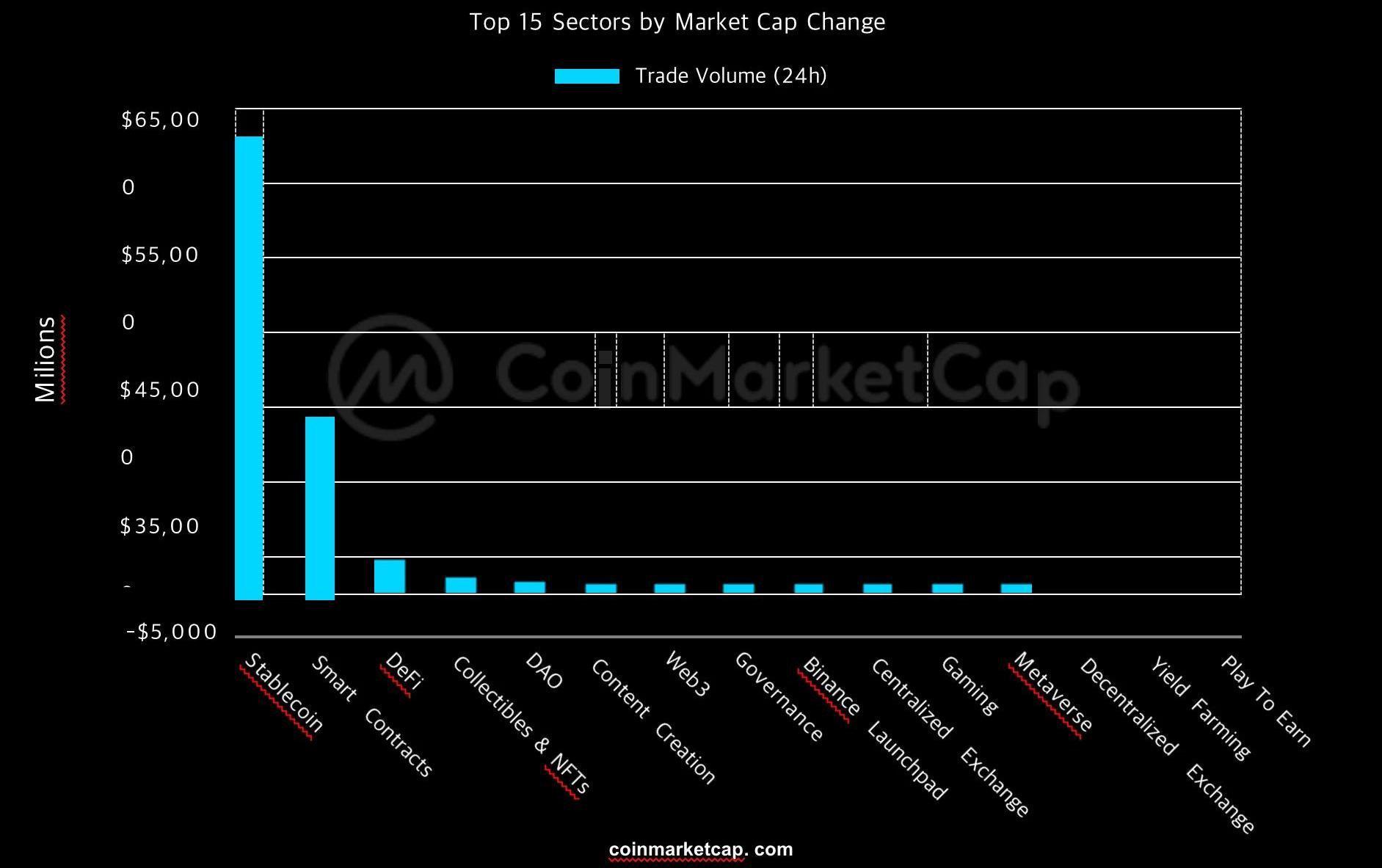 仅在8月份,加密市场总市值就下降了9.97%,目前已降至1万亿以下。这在一定程度上是受宏观因素和全球经济形势严峻的影响。然而,有几个行业仍在强劲增长:市值:8月份,DeFi、智能合约和NFT的市值增幅最大;竞猜和粉丝代币板块的市值增长率最高,分别为404%和262%。交易量:稳定币和DeFi仍然领先;新上线代币:与GameFi相关的行业,如P2E、游戏和元宇宙上线的新代币数量最多,8月份增长了14%左右。第1章:加密市场构成