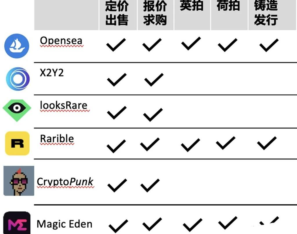 结论1:买卖机制不利于流动性池NFT而言流动性是至关重要的,而每次报价都要上链显然是盆冷水,卖家不缺钱则不乐意动,买家难成交也缺乏动机,所以对报价者即收费且要求锁定资产到Punk此举虽然不会出现扣款失败的情况,但是也导致买家资产的时间的价值的损失这点,后来Os等平台均采用签名的方式,来链下撮合购买意愿,报价近乎无需gas仅成单的时候需要链上登记订单结果来执行转移这一击是中心化与去中心化在效率上的争夺,显然现在的市场还是需要效率结论2:订单模型不利于批量操作Punk订单模型的简约堪称是交易模型的典范,然而面对批量成交的诉求呢?卖家:得每个id每个报单,确定成交买家:得每个id每个竞价,等待成交虽然收益的资金有可以累计后批量提取的设计,但不是重点而批量报价成交,是现在NFT市场的必争之地x2y2和Looksrare都在这点发力作为针对os的包围战,甚至拉上Gem等聚合器打通流量池的局限性,而os最新的SeaPort协议也实现了捆绑交易的新订单模型,从而可以任意资产组合对应任意资产组合直接实现市场交易然而Punk的源码太过于超前,缺乏了代扣授权的功能,再也无缘批量成交结论3:单一拍卖流程不利于撮合成交与定价成交是需要妥协的,而NFT当前的价值也需要通过成交来博弈,如何为NFT定价一直都是巨大的难题由此常见有四大拍卖机制:英式拍卖。公开竞标往上拾价,最高出价者得荷式拍卖。价格由高往低降,首个出价者得第一价格拍卖。对拍品进行单独密封报价竞品,不知道其他竞买人的出价第二价格拍卖。与上类似,不同的是最后出价最高者获胜,但只需按第二高价格支付而这些拍卖机制是Opensea的基础功能,利于促进成交与定价英拍:限定时间竞拍,即不占用高价值蓝筹的资金成本,也有时间缓冲来拟合各群体的博弈结果荷拍:更有效的减少过高报价流动性低而无成交的问题,让价值总要依据市场而变化