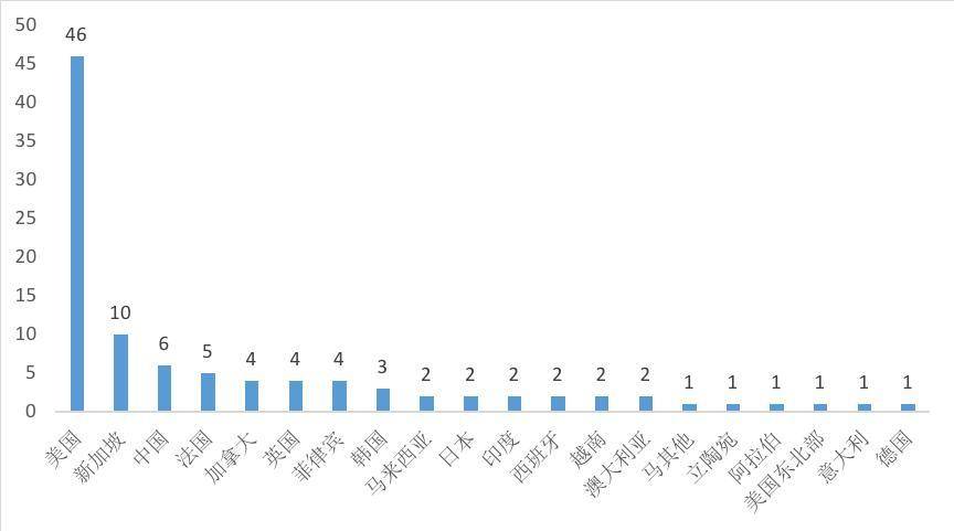 图 5. NFT 相关产业融资事件地区分布(2021 年 1 月—9 月),数据来源:01 区块链