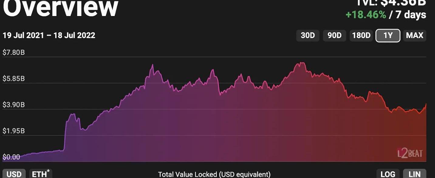 以太坊的第二层网络生态系统继续处在快速增长的势头中。目前,在二十二个第二层网络项目中,总锁仓量已经超过了43.6亿美元,这一数字比一年前增加了1194%。俗话说得好,有增长的地方就有竞争。随着人们对这一赛道越来越关注,第二层网络生态系统内的竞争格局也在愈演愈烈。